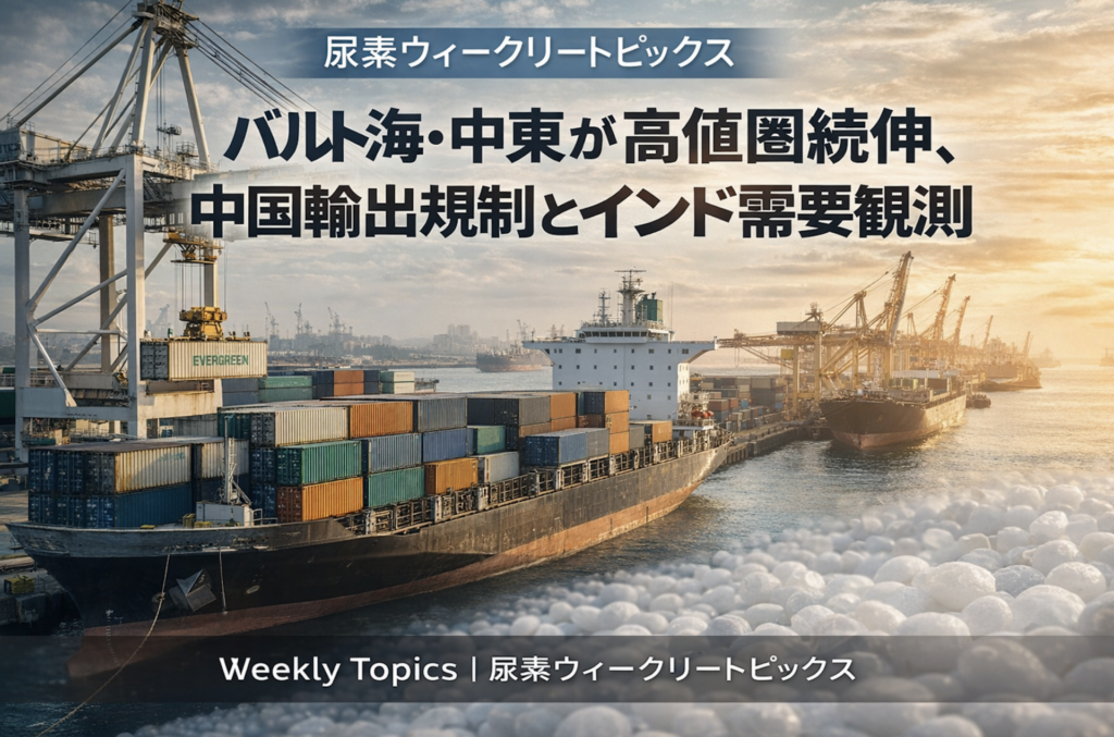 ドライバー:中国当局による輸出規制が続き、供給不足感が強い。2月積みに買い気が浮上し、数千トン規模の成約情報(韓国向けとの指摘)も伝えられた。2026年以降の輸出枠の割当が行われていない様子で、成約は前年枠の売れ残りとの見立てもある。国内は春肥需要に加え、海外市況の強さが下支え。