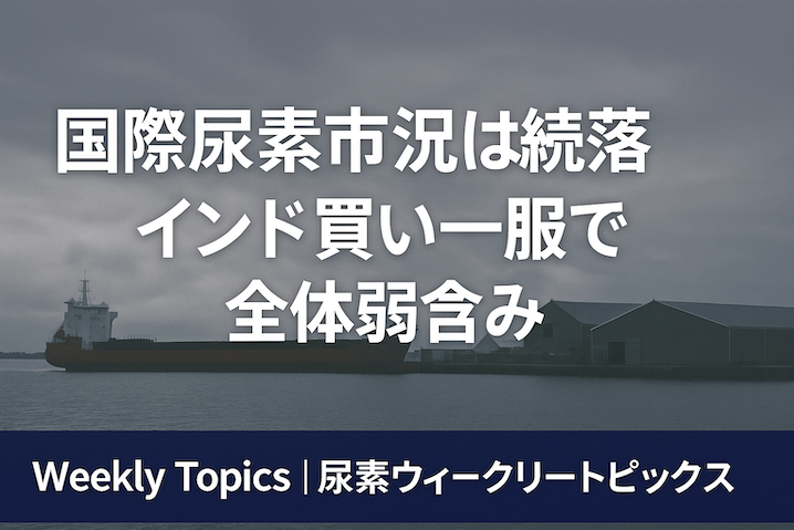 FOBバルト海は前週比で5ドル安の$360台後半〜$370台中盤。需給緩和感から下押し圧力が強まった。欧州ではCBAM(炭素国境調整メカニズム)導入を控え、尿素調達コストの上昇懸念がくすぶるが、当面の需要は鈍く、年末までの買い急ぎは限定的。全体的に買い手は慎重姿勢で様子見ムードが続いている。