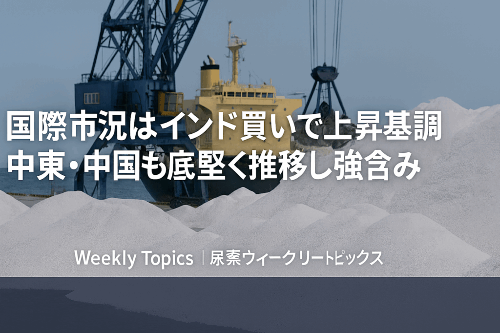 中国は上昇。中国当局が 10〜12月分の輸出枠を追加的に許可した とされ、輸出余地は年間で数十万トン規模とみられる。小粒尿素は 400ドル台前半、大粒尿素は 400ドル台半ば といずれも400ドル台に乗せて堅調。また、国内の工場稼働は7割前後で推移し、原料ガス価格も落ち着きつつある。国内向け価格も上向き。